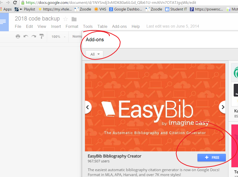 Easybib can also be accessed from within a document by clicking Add-ons too:)
